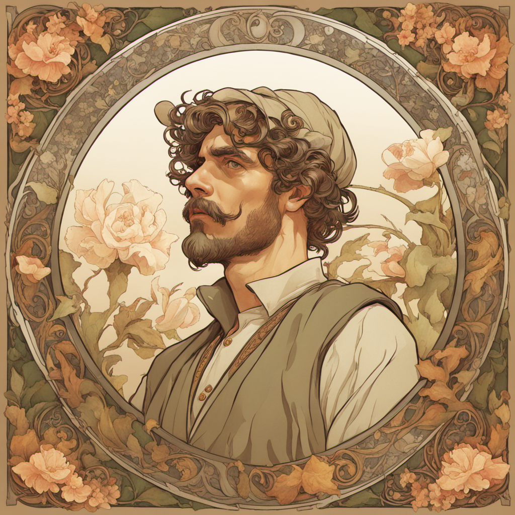 Ilustraciones con florituras. Aunque pongas criatura, sale mujer. 2D portrait painting in style of Alphonse Mucha. Falla en realismo, pero para paisajes ficticios mola.